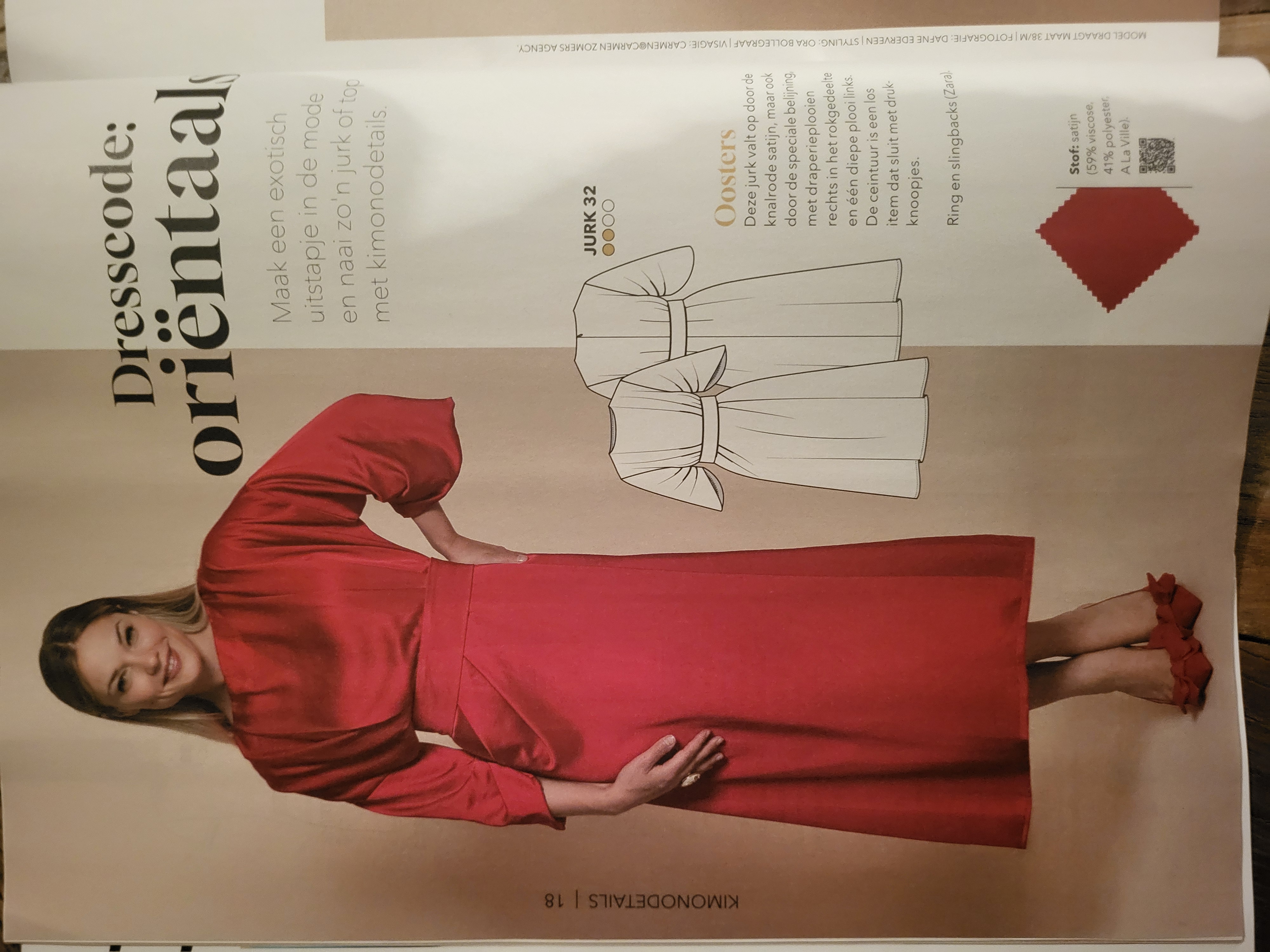 Glanzende stoffen zijn moeilijk te fotograferen. Kleur is warm rood.