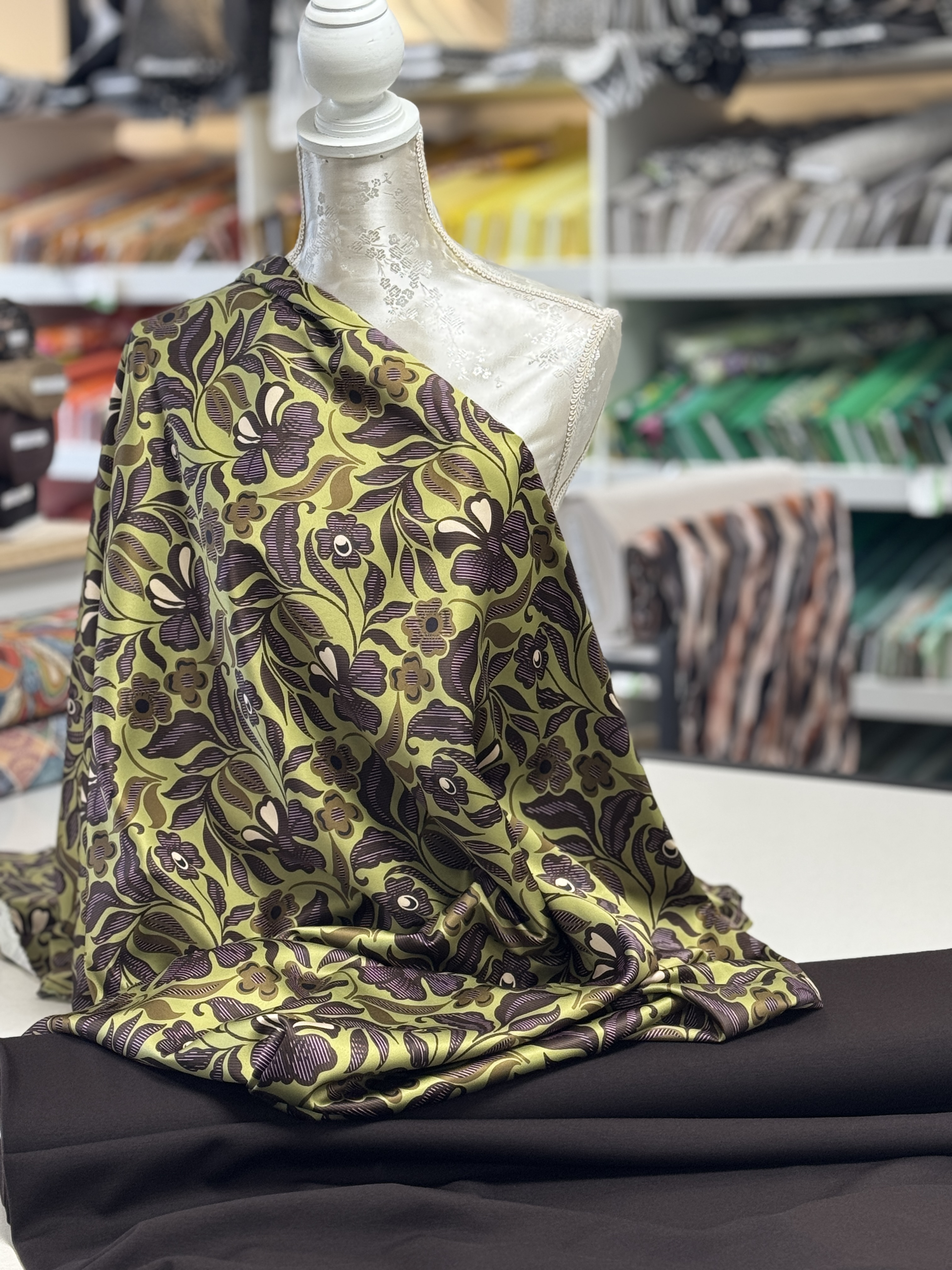 Prachtige glanzende kwaliteit voor blouse, jurk of rok; wijde broek mag ook.
