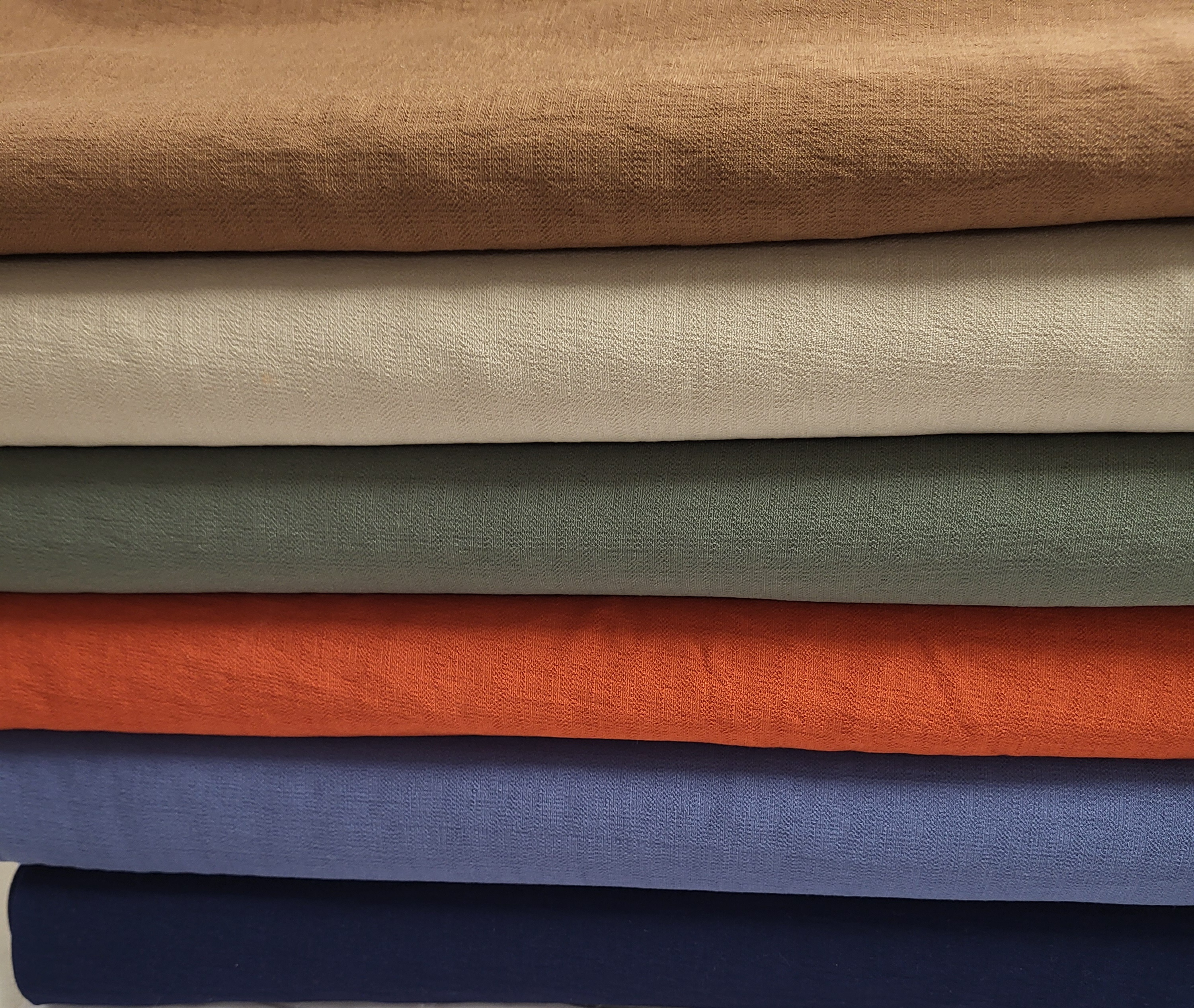 De stof valt soepel maar heeft een beetje grip en geeft niet of nauwelijks kreuk.