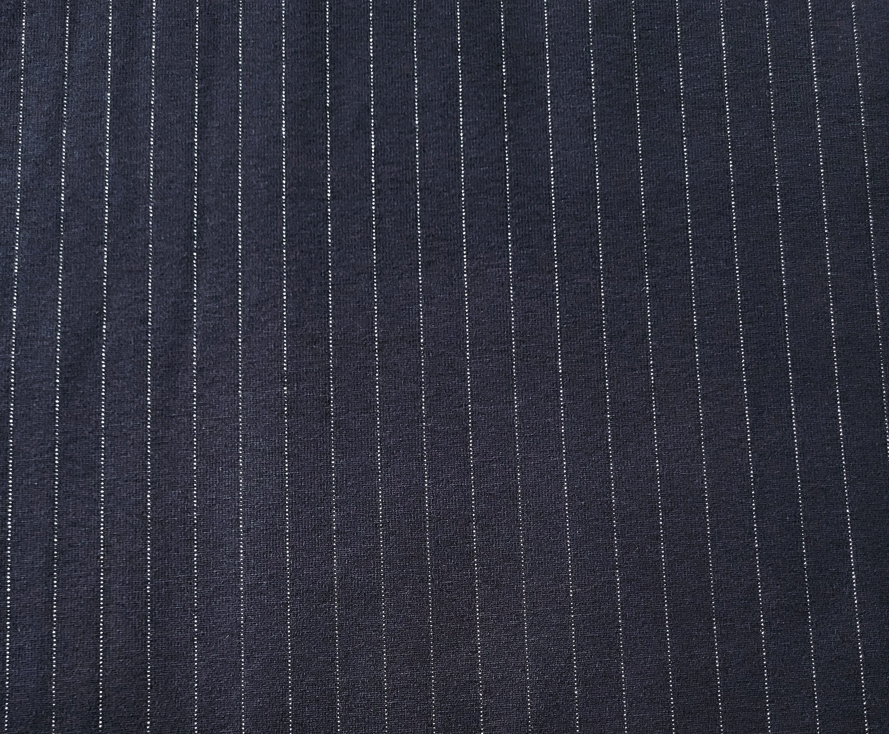 Soepel vallende Jersey met een verfijnde lurex krijtstreep. Mooi voor een broek, jasje,rok,jurk etc.