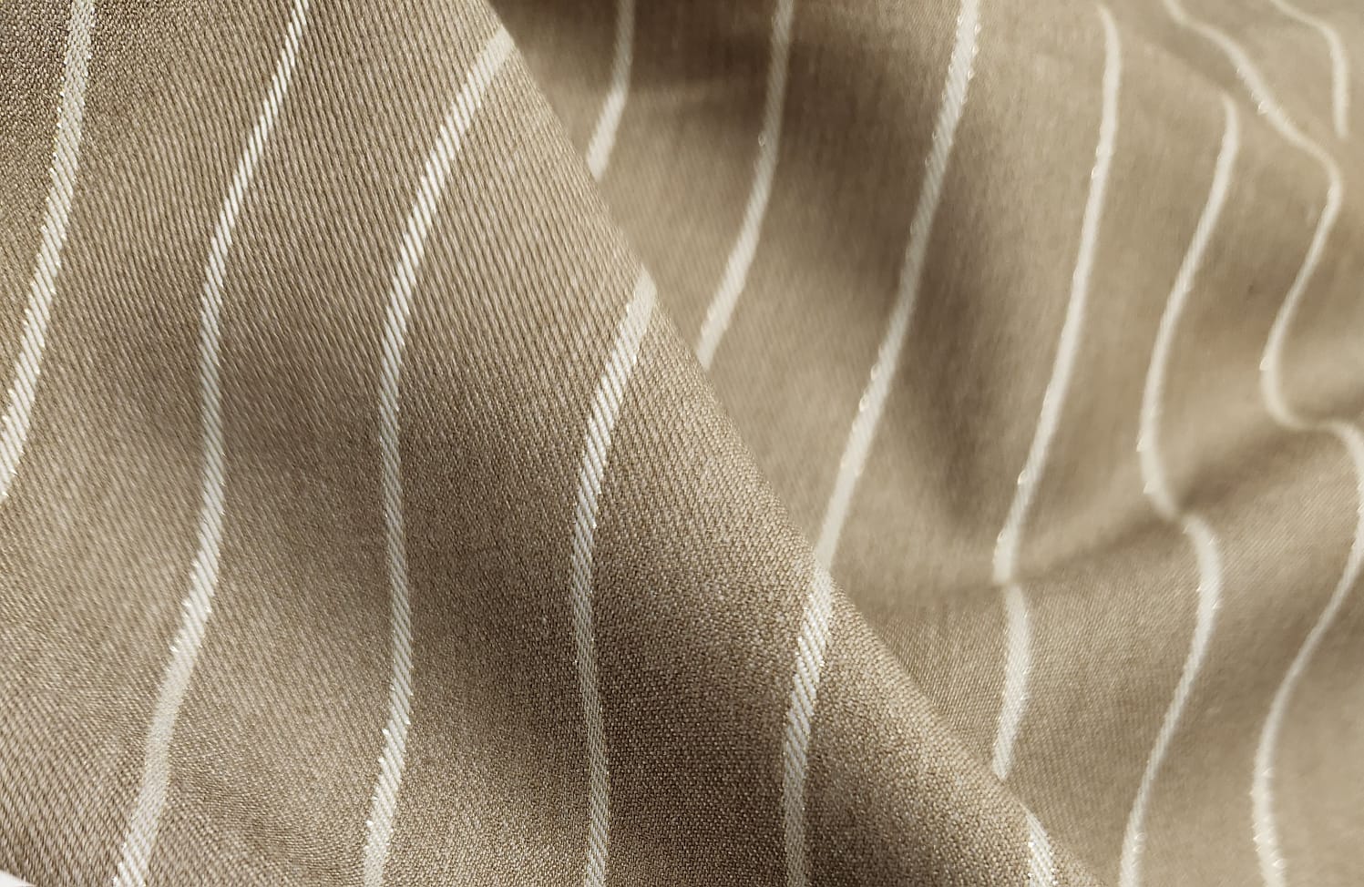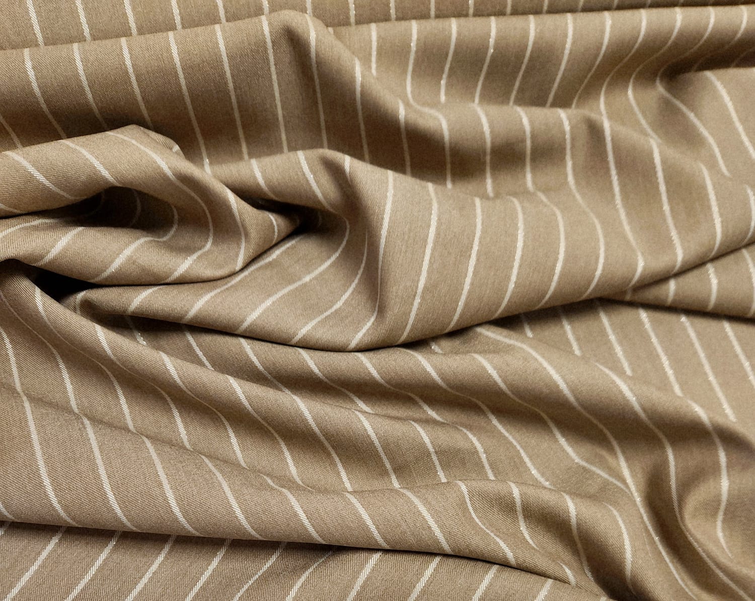 Soepel vallende geweven stof met een subtiel krijtstreepje. Mooi voor een broek, jasje, rok, jurk etc