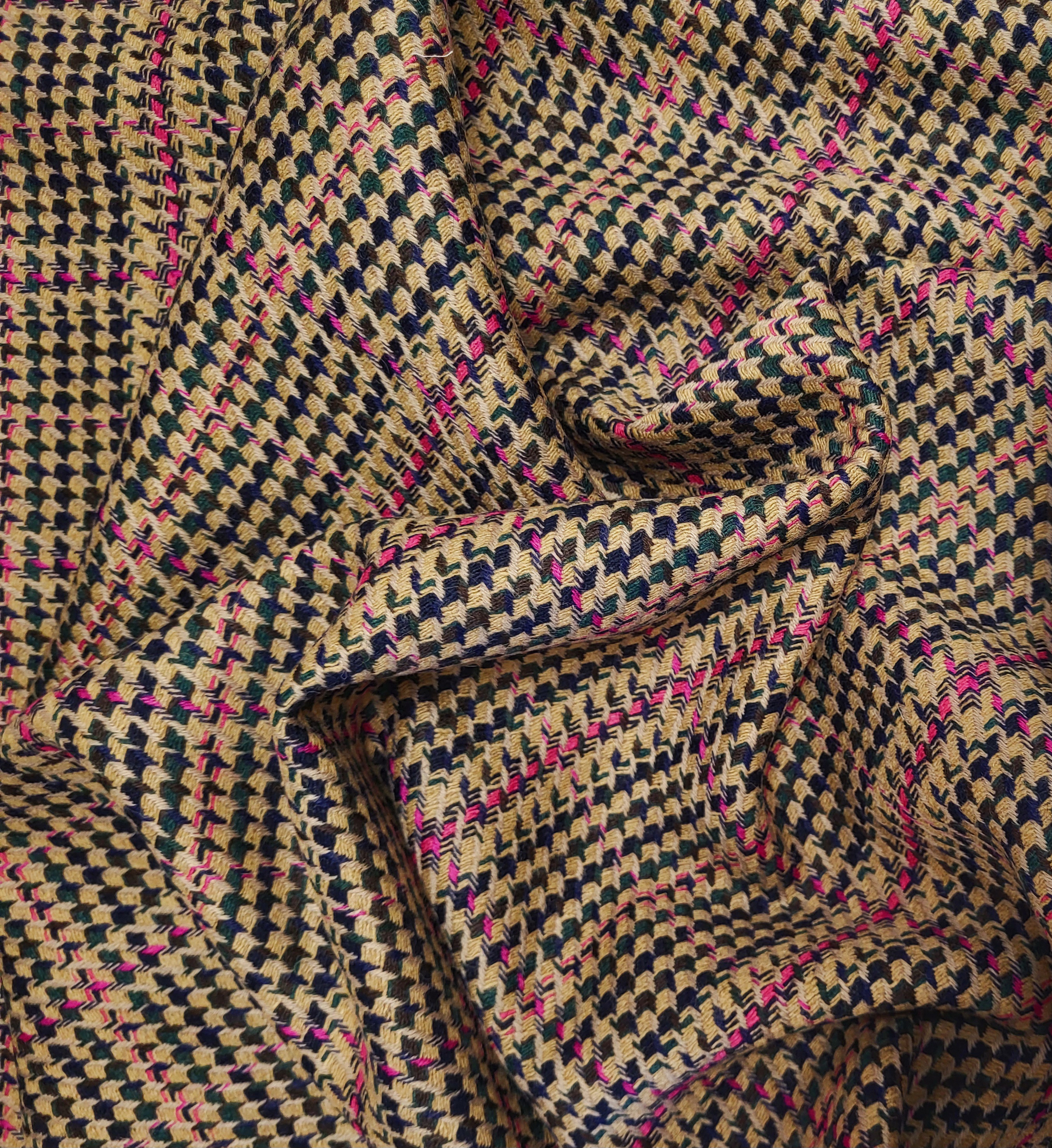 Mooie geweven stof in een verrassende kleurstelling. Voor een jasje, mantel of rok.